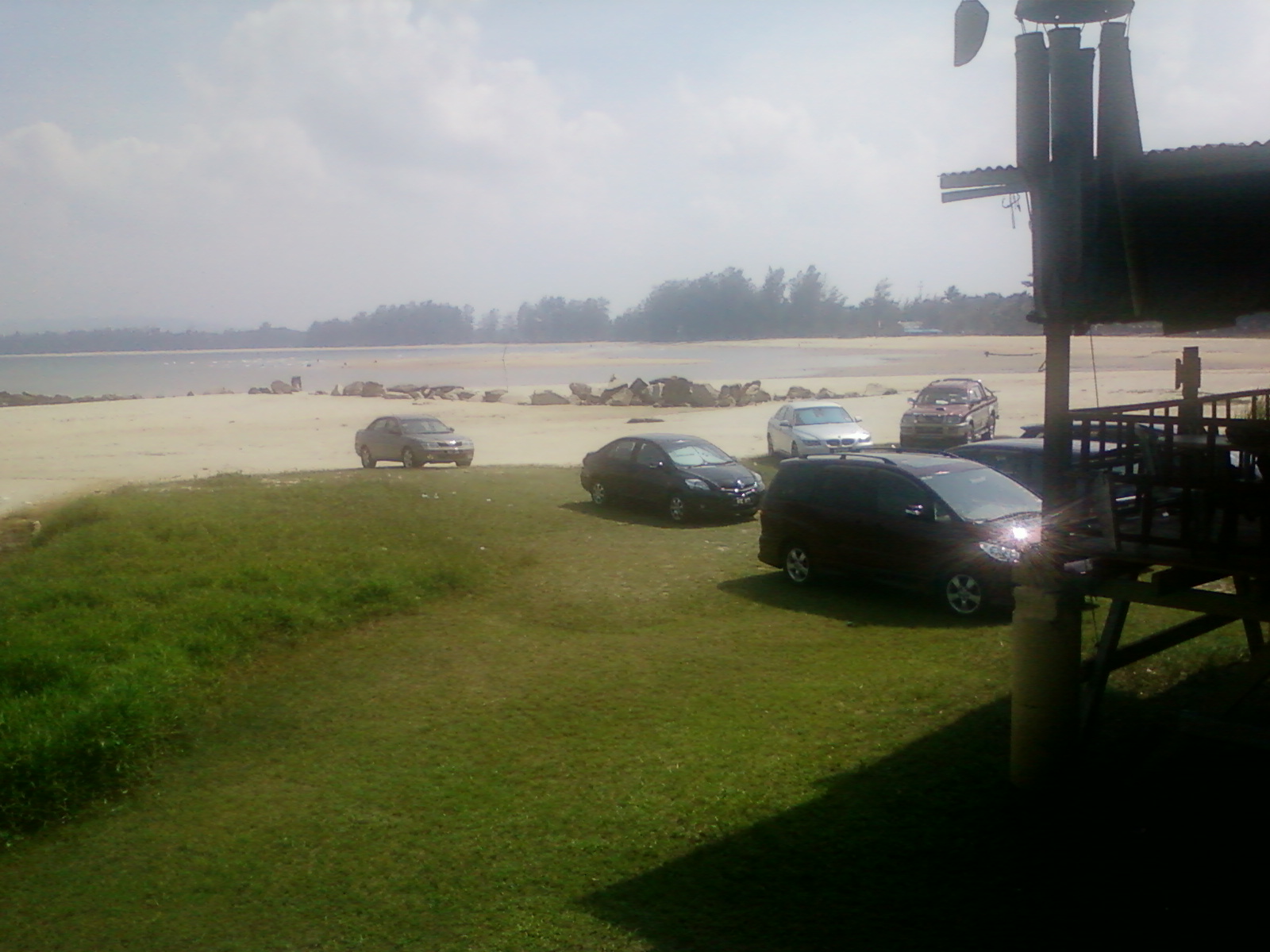 Then we head of for a 3 hour journey across the country from west to east coast, on our way, we saw some..... well we saw nothing much, except cows crossing roads.... why, because Master and I were addicted to iPad!!! and Dad had his eyes on the road and Mama had her ears on the phone with the others.... yea, there were others, 24 others that is... it's like a reunion! that's because it is.... After an hour, we stop for a toilet break somewhere near Karak highway.... Then that's pretty much the last time we stop until we finally arrived at The Legend Resort Cherating, where Dad made a U turn after passing by a kilometre, because he found a place to have lunch, then he made a U turn, to go to the hotel to check in, yea, WE WERE FIRST!!! how great was that, we get all the keys and we go up to the room and put our stuffs, unfortunately the other rooms of that floor were taken, so we had to move to one of the sea view rooms, yes, of course there are extra charges... Then came the Yap family, who met us at the corridor, then we met the Chan family at the lobby getting their luggage out, then we wait for them to unpack, then we head of for lunch, which Dad already decided where to eat.